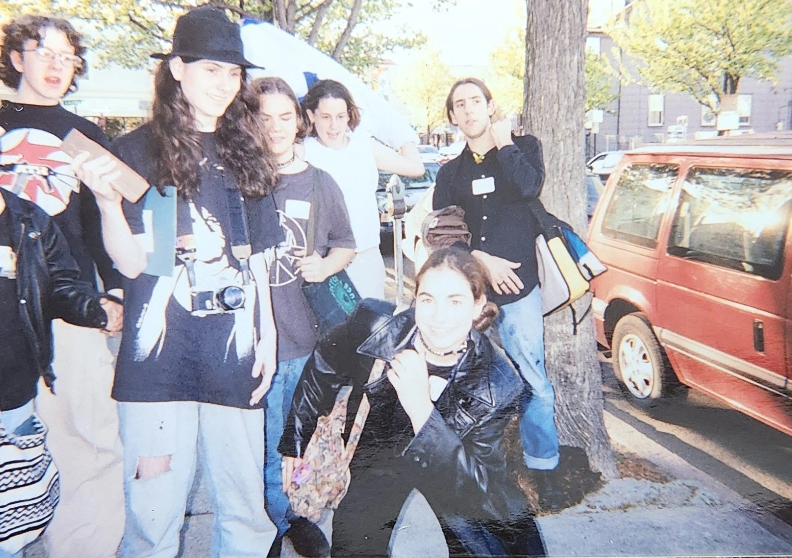 Members of CRLS’ Project 10 East posing together during a club activity, not dated (likely c. 1995-1999). Queer History Boston, Coll. 028 - Project 10 East, Photo Album 4.